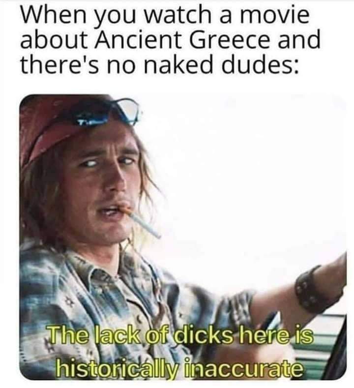 When you watch a movie about Ancient Greece and there’s no naked dudes: The lack of dicks here is historically inaccurate.