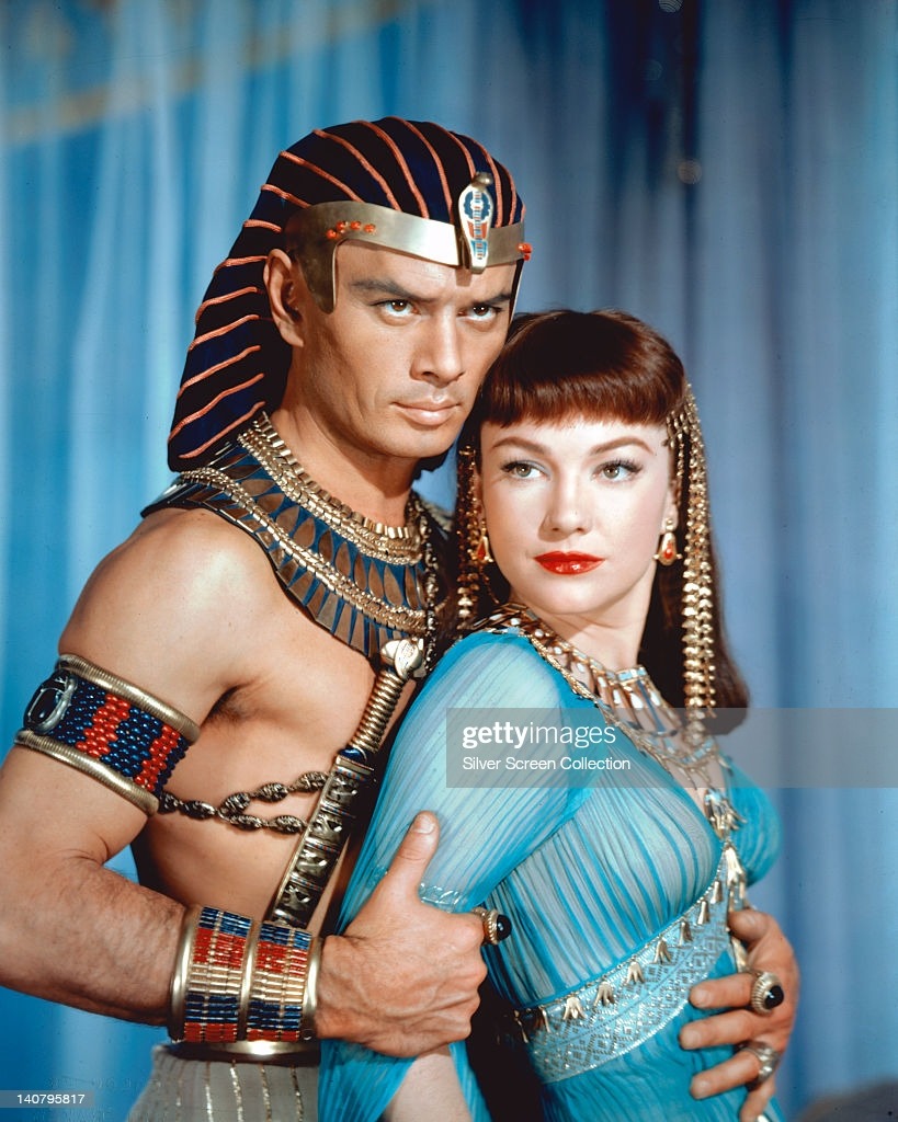 Anne Baxter (1923-1985), US actress, and Yul Brynner (1920-1985), Russian-born US actor, both in costume in a publicity portrait issued for the film, ‘The Ten...